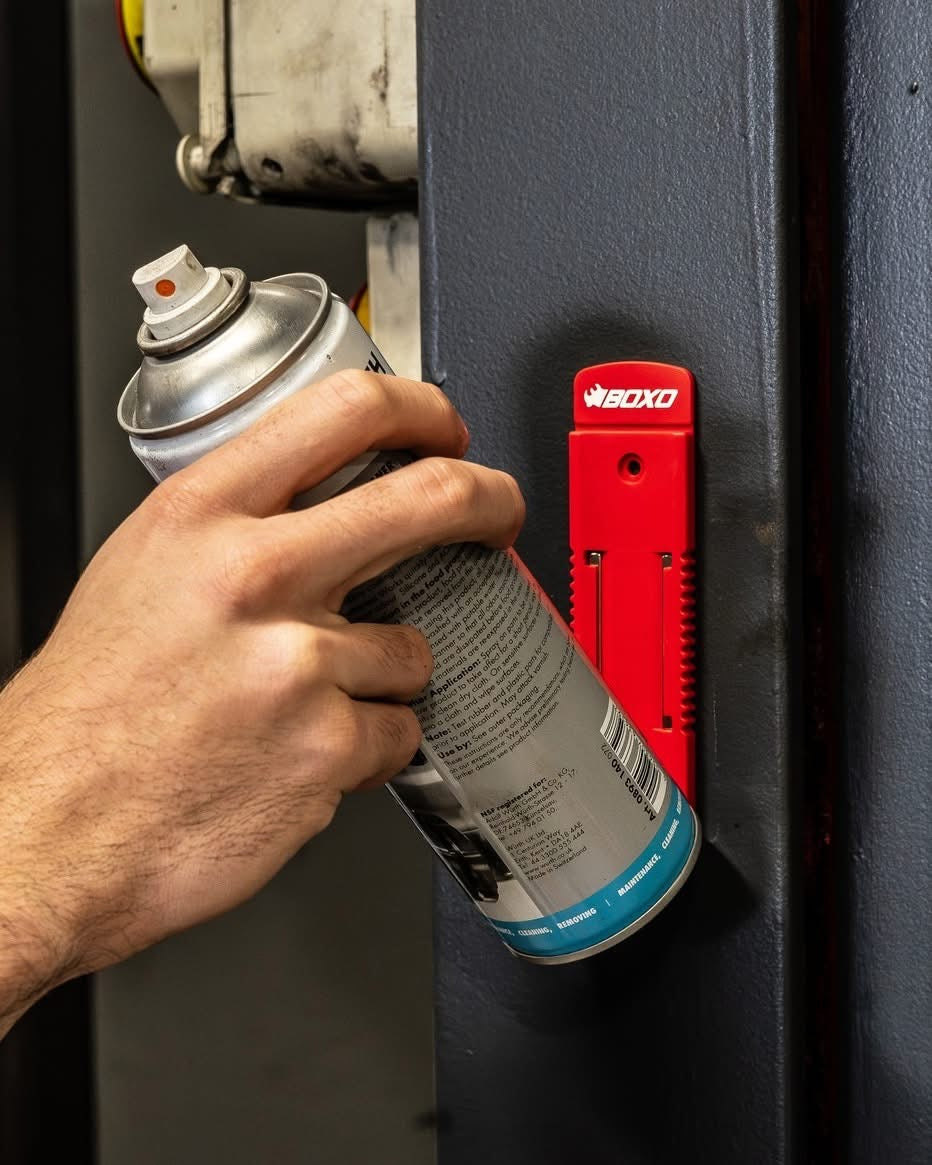The Flexible Magnetic Can Holder with Mounting Holes provides a practical and secure storage solution for aerosol cans, lubricants, and similar containers. Its strong magnetic backing allows easy attachment to metal surfaces, while the pre-drilled mounting holes offer optional permanent installation. Constructed from durable, flexible material, it resists wear and adapts to various can sizes. Ideal for workshops, garages, and service vehicles, this holder keeps frequently used items organized and within easy reach.