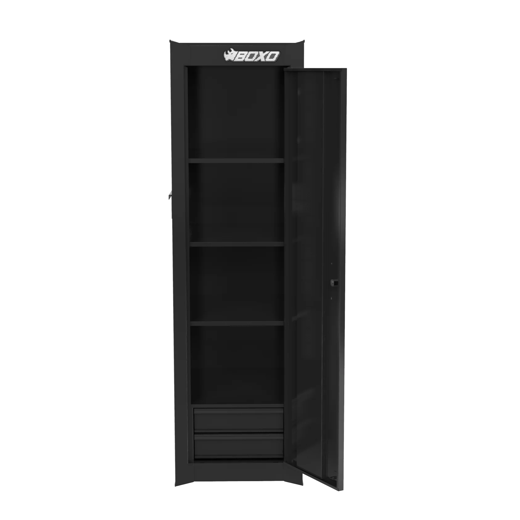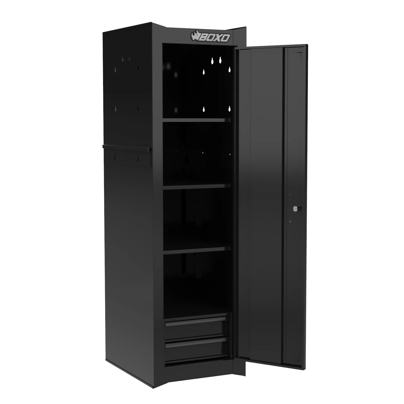 This side locker is designed to fit BOXO 41-inch and 53-inch toolbox stacks, providing a perfect match in height and finish. This model is not compatible with the BOXO Pro modular series.