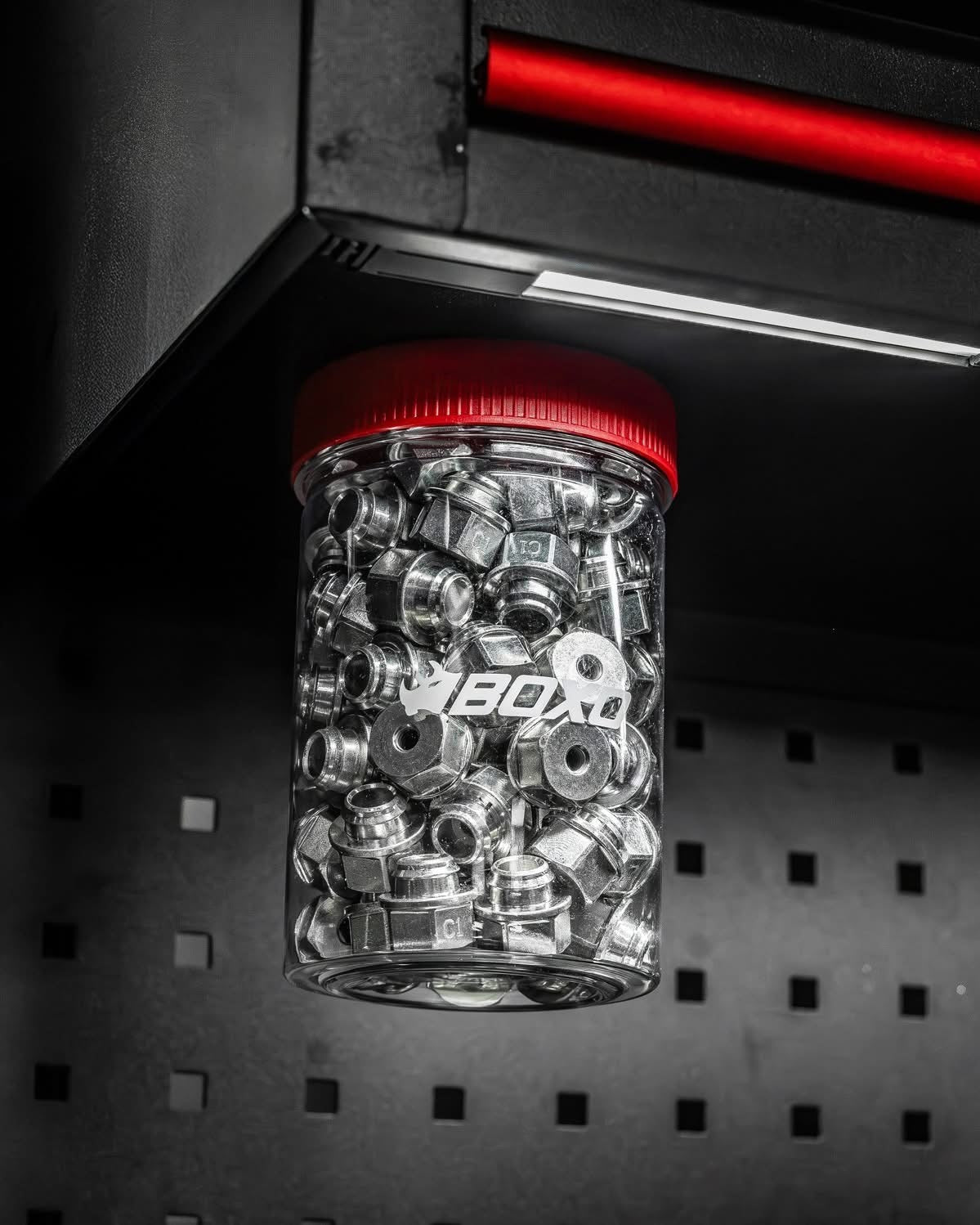 The BOXO Magnetic Plastic Jar offers a convenient and secure way to store small parts, fasteners, and accessories. Featuring a strong magnetic lid, it easily attaches to toolboxes, workbenches, or metal surfaces, keeping essential items within reach. The durable, transparent plastic jar allows for quick content identification, while the screw-on lid ensures contents stay protected and organized. Ideal for professional workshops, garages, and mobile tool setups.