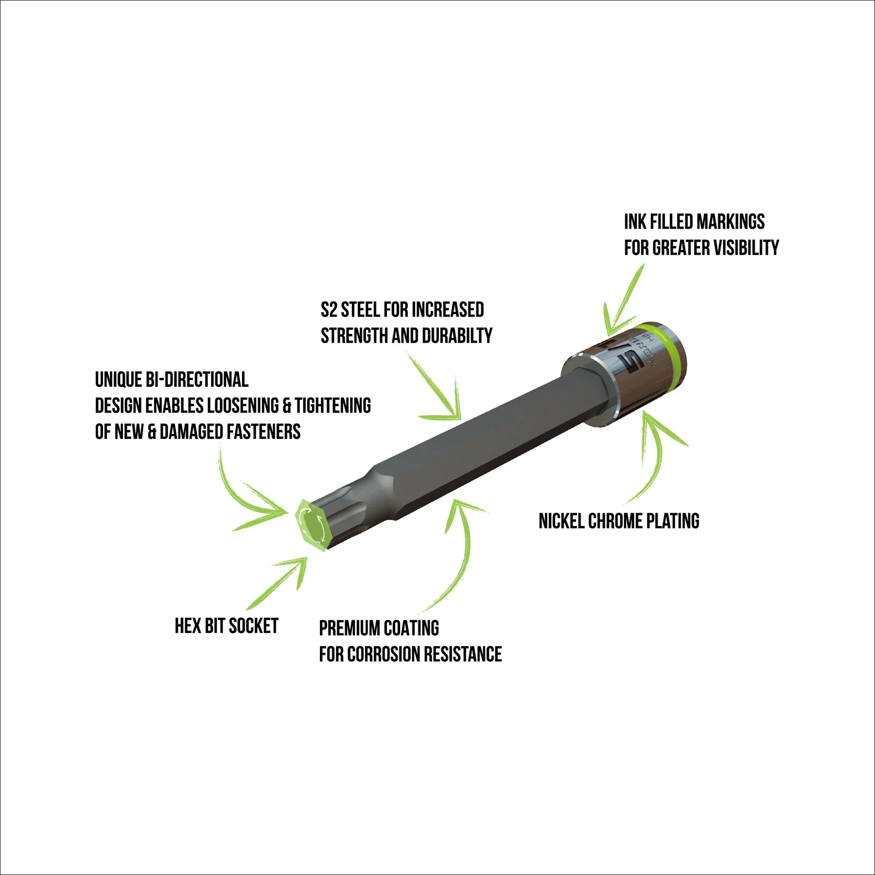 - Patented and unique bi-directional design enables loosening & tightening of new and damaged hex fasteners