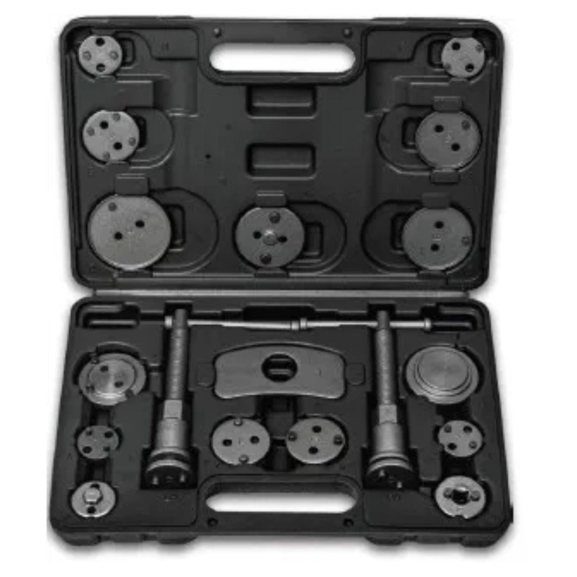 The POWERHAND 18Pc Brake Rewind Kit is a comprehensive, high-quality toolset designed for the efficient servicing of brake calipers on most modern vehicles. Ideal for professional mechanics, this kit includes a wide range of adapters to fit various car makes and models. It features durable, precision-engineered components for both clockwise and counter-clockwise piston retraction, making brake pad replacement fast, safe, and effective. Supplied in a sturdy, organized carry case, the Powerhand kit ensures convenience and reliability in any workshop or garage.