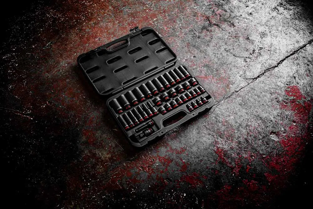 A comprehensive and heavy-duty socket set designed for professional use. Covering sizes from 6mm to 24mm in both shallow and deep profiles, it includes a universal joint and extension for improved access in tight spaces. Manufactured for strength and durability, this set is ideal for use with impact wrenches in automotive, mechanical, and industrial applications.