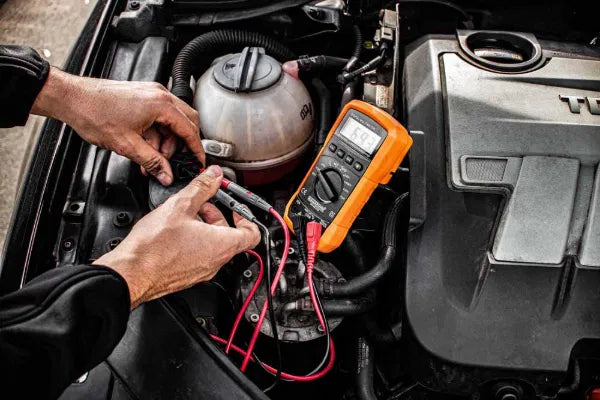 A compact and reliable digital multimeter tailored for automotive diagnostics. Featuring a 2000-count auto-ranging display, it offers precise measurements of DC/AC voltage, current, resistance, and continuity. Its user-friendly design includes LCD with backlight, data hold, and maximum value hold functions. Built for durability, it is ideal for both professional technicians seeking accurate and efficient electrical testing in automotive applications.
