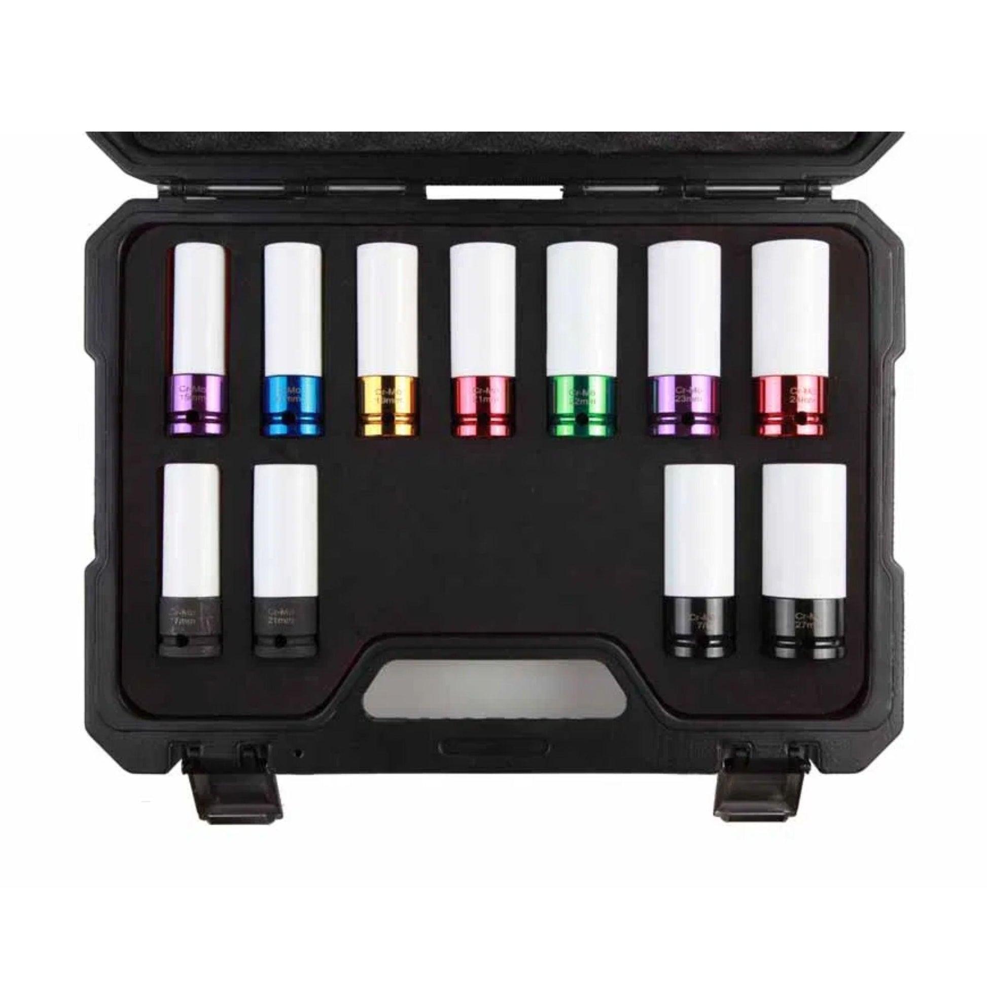The Powerhand 11Pc 1/2" Master Alloy Wheel Socket Set is designed for safe and efficient removal of alloy wheel nuts. Each socket features a protective sleeve and insert to prevent damage to wheel finishes, making it ideal for use on high-value or delicate alloys. Supplied in a durable case for organised storage, this professional-grade set is essential for automotive workshops and tyre specialists.