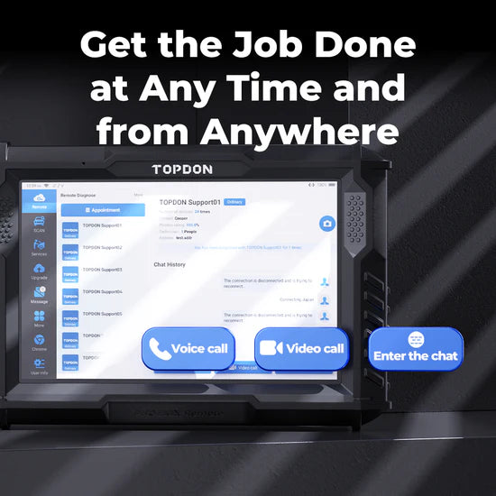 - This tool's technical support includes a remote service staff composed of TOPDON's professional technicians, available to offer instant assistance throughout remote diagnosis procedures.