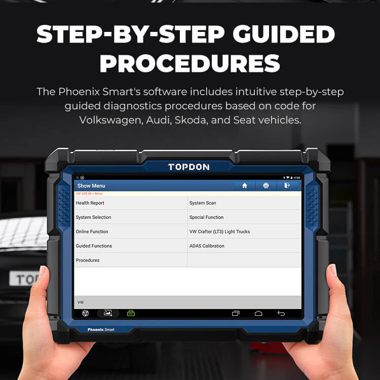 - Guided procedures and functions streamlines the repair process. Follow the prompts for easy and convenient operation, suitable for VW, Audi, Skoda and SEAT vehicles.
